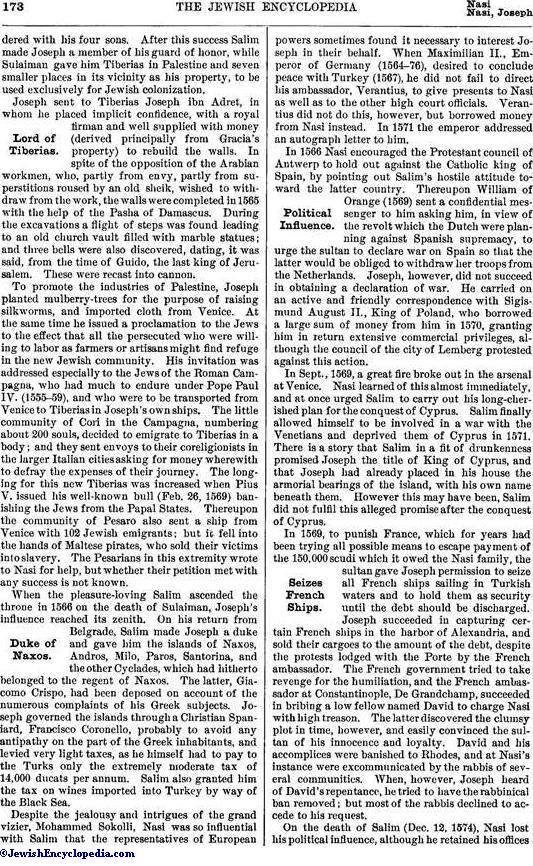 Ο Joseph Nasi σχετίζεται με την Ελλάδα ως Δούκας της Νάξου αλλά και με τη μοίρα της Κύπρου την οποία απαίτησε ως δώρο από τον Σουλτάνο.Εκεί που αναγράφεται ...επιρροή ...μπορείτε να φανταστείτε ΠΟΙΟΣ και με ΠΟΙΟΝ τρόπο μπορεί να επιβληθεί σε έναν αυτοκράτορα, να του επιβάλει να μπει σε πόλεμο ενάντια σε μία άλλη αυτοκρατορία ...και να εκβιάσει τις εξελίξεις.