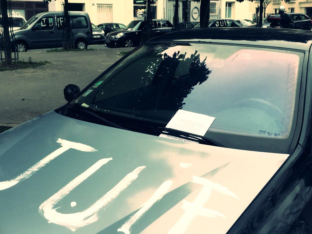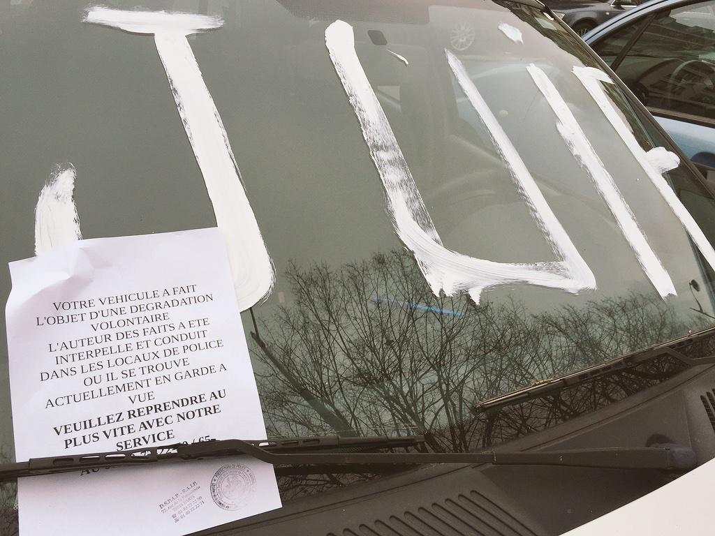 Η αστυνομία είχε πρότερες σοβαρές υποψίες οι οποίες επιβεβαιώθηκαν. Την Δευτέρα στις 16 μ.μ. περίπου, ένας άνδρας πιάστηκε την ώρα που έγραφε τη λέξη "Εβραίος" σε σταθμευμένα οχήματα στην λεωφόρο général-Clavery και στην λεωφόρο Dode-de-la-Brunerie στο 16ο διαμέρισμα. Μία εικοσάδα αυτοκινήτων ήταν ήδη μαρκαρισμένα. "Η αστυνομία του πέρασε χειροπέδες, και τον συνέλαβε. Εγώ είπα, ότι αυτός είναι τελείως τρελός για να το κάνει αυτό. Ένα από τα όργανα μου απάντησε «Όχι δεν είναι, και αυτό φαίνεται από αυτή του την πράξη», δήλωσε ένας μάρτυρας στη MetroNews.