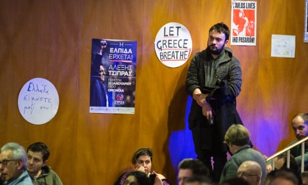 It could easily have been a scene from one of this week’s post-election victory rallies in Greece, as supporters of the victorious Syriza party cheered, surrounded by posters and banners.
